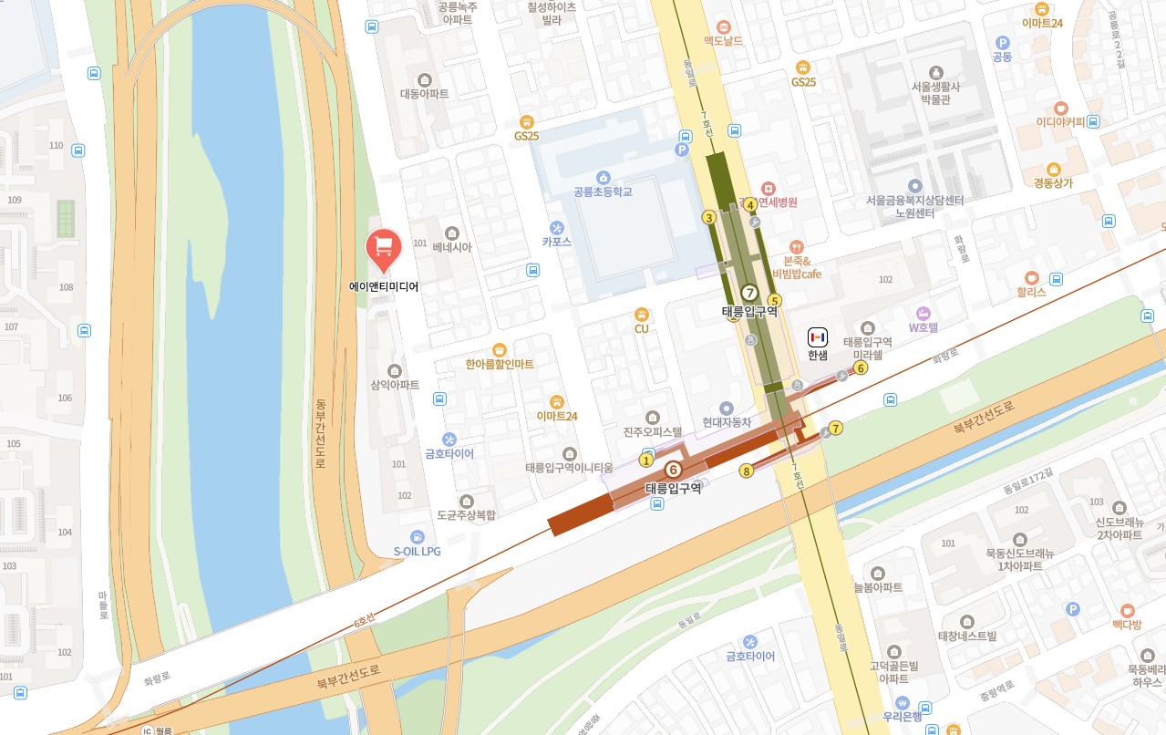 6호선, 7호선 태릉입구역 3번 출구에서 400m 이내